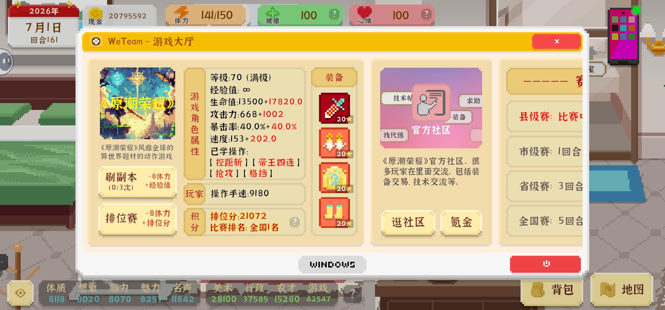 如果何同学都可以成为对像就好,好感刷到149才知道没可能。 我拿了全国第一才同嘉莉恋爱,好感度要300先可以结婚🫠神器仲难过抽100万彩票有些不舍得钱及不同能力数值,都刷得几长时间。今次一周目就完成到36个成就,一开始不会玩😖希望游戏之后可以钓鱼!