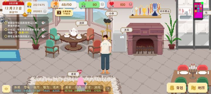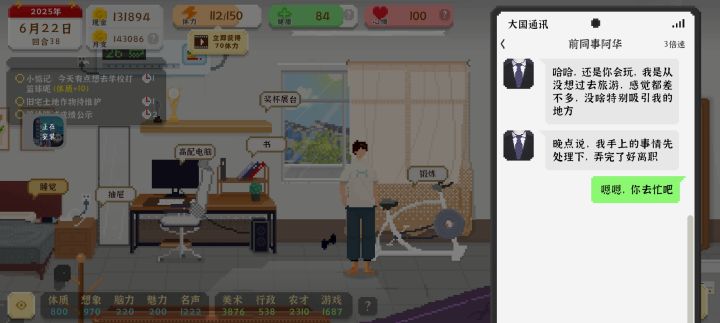 前期不会玩,情侣也没搞到,7万也没拿到手,还差点病死,还好后面赚了钱当上老板才好起来。建议早点开游戏工作室,自己的游戏可以不着急玩,然后选直播天赋高的员工,天赋10的员工,打赏47万,可以每局获得11万,8个主播员工就是88万。