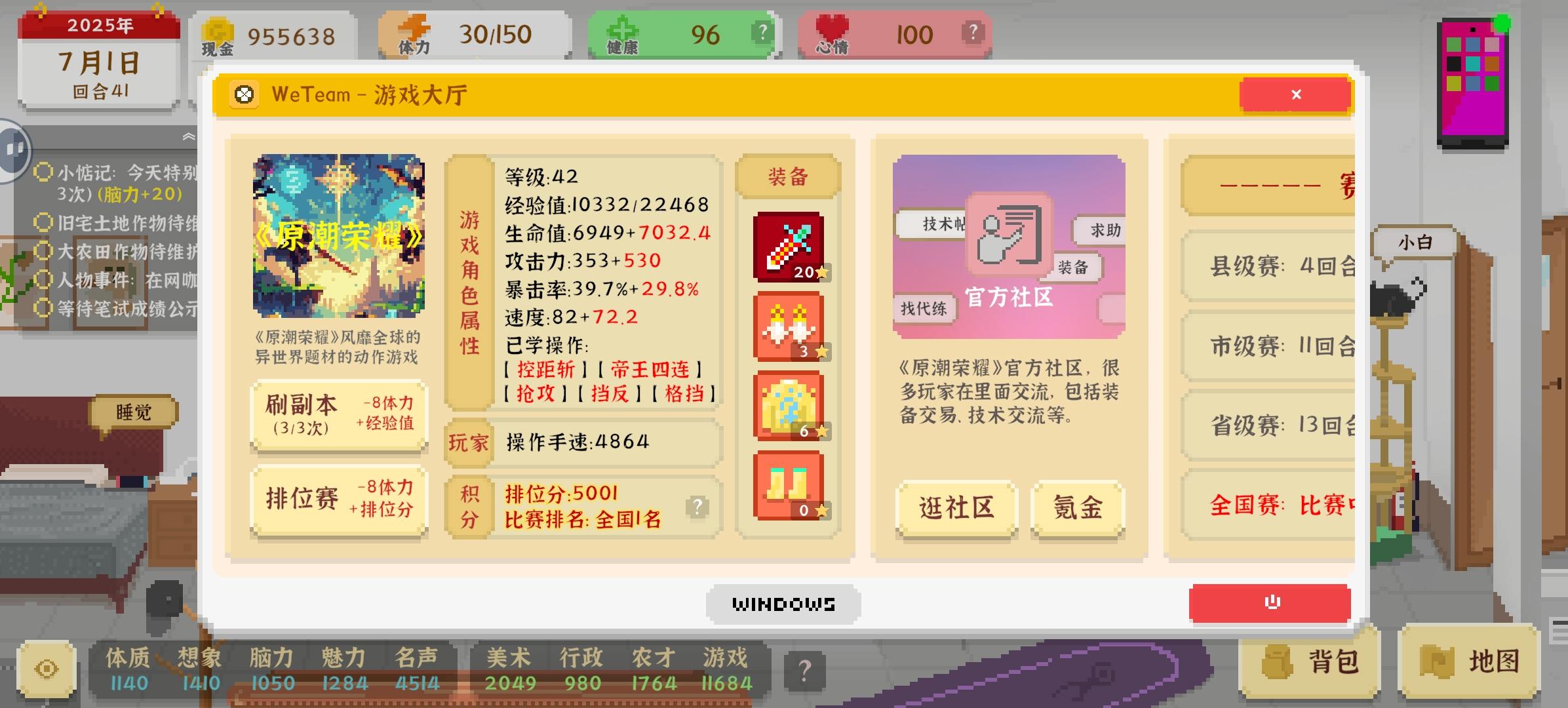 如果何同学都可以成为对像就好,好感刷到149才知道没可能。 我拿了全国第一才同嘉莉恋爱,好感度要300先可以结婚🫠神器仲难过抽100万彩票有些不舍得钱及不同能力数值,都刷得几长时间。今次一周目就完成到36个成就,一开始不会玩😖希望游戏之后可以钓鱼!
