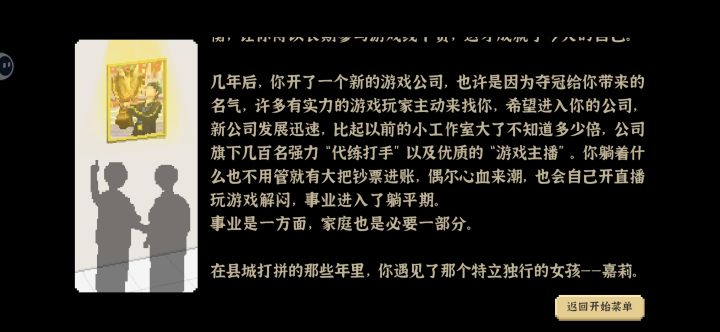 当了高级公务员,游戏当了全国第一,工作室也开满了,最后选择了和嘉莉结婚的结局。话说给公务员那个哥们送27万是啥结局啊,还有就是和小花又是啥结局