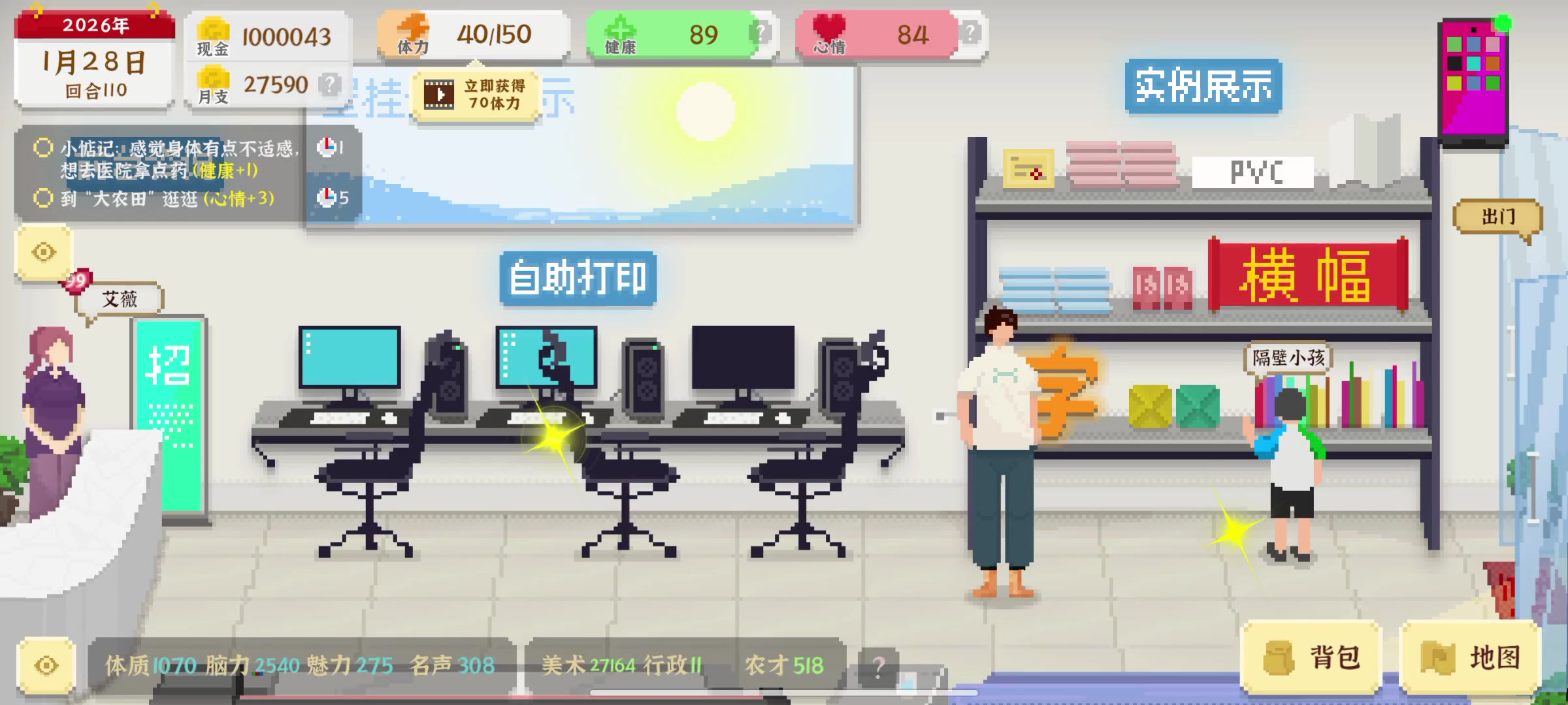像素风模拟经营,自由安排日程,探索多样结局#新年新安利 #默泯手游推荐