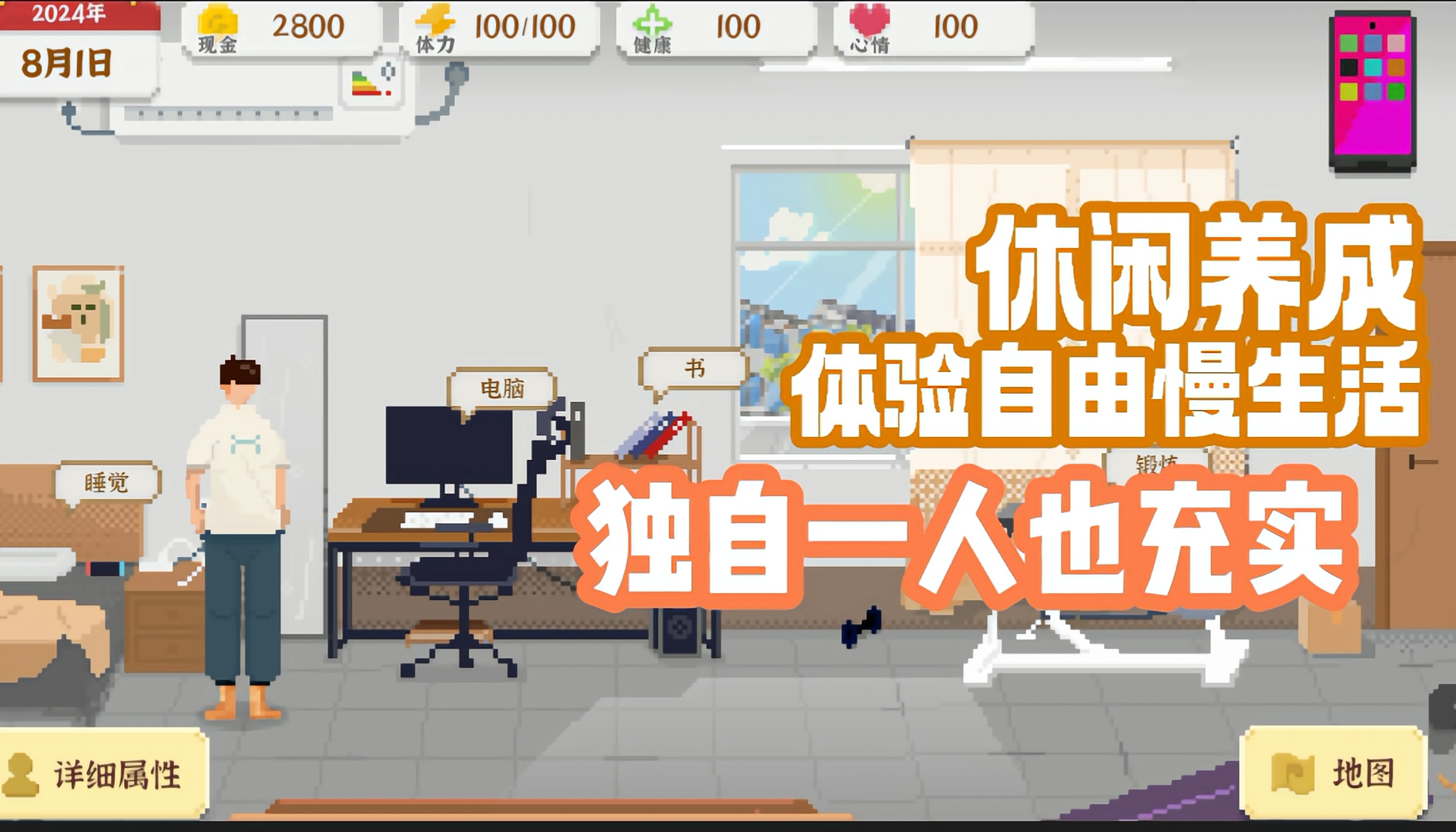 通关了,挺好玩的,我玩的是编程路线,这个游戏是有三条路线的,农民线,编程线还有考公线,就我而言,编程路线前面挣钱有点慢,但后面实现财富自由后又日常生活感觉有点千篇一律,有点无聊,希望在后面刷钱的过程中能加点东西,让后期别这么物聊#我独自生活 #我独自生活公测