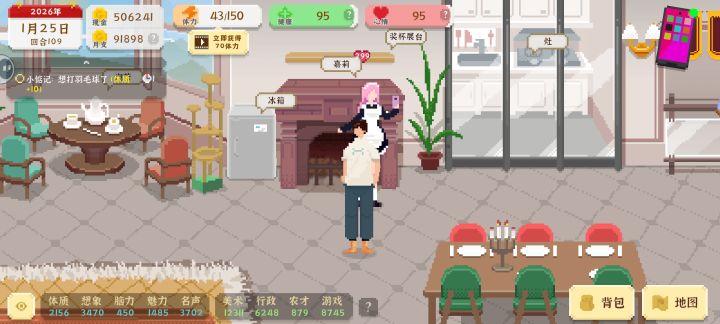 首先是体会:刚开始玩的时候三次全死于猝死(身体的本钱),这第四把就注意吧健康维持在80以上,解锁写字楼后,能开工作室了就得开,自己接单是真的伤身体,等后面自己偶尔接接还不错,反正我后期一个1w一个3w一个10w共三个作品的超出还不如后面一场直播挣得多,所以设计终归小道,前期铺路就够了,可以从政最高只能到高级公务员,我还想胜天半子呢最后是建议:1.建议官方增加节日之类的内容,像春