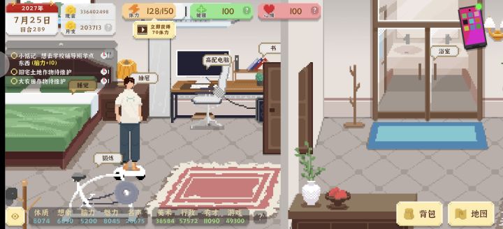 首先是体会:刚开始玩的时候三次全死于猝死(身体的本钱),这第四把就注意吧健康维持在80以上,解锁写字楼后,能开工作室了就得开,自己接单是真的伤身体,等后面自己偶尔接接还不错,反正我后期一个1w一个3w一个10w共三个作品的超出还不如后面一场直播挣得多,所以设计终归小道,前期铺路就够了,可以从政最高只能到高级公务员,我还想胜天半子呢最后是建议:1.建议官方增加节日之类的内容,像春