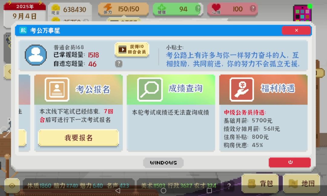 体验还是体验还是很不错,通关花了大概四个小时,考公那一部分,实际上3000题量然后行政1100就够当时考出来应该是98的分数以及71的面试成绩,后面升级个中级公务员,我的钱就够用了直接通关结局还算不错的#我独自生活娶艾薇 #我独自生活