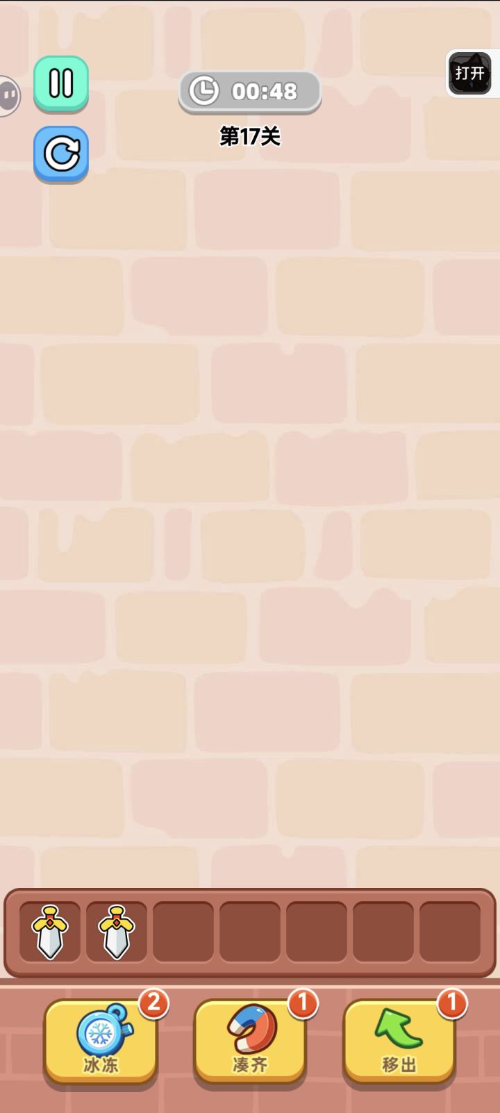 终极模式同羊了个羊,第一关超简单,第二关同开启了地狱模式。常规模式是关卡制,难度逐渐增加,主要体现在物件数量增多和时间压力上。