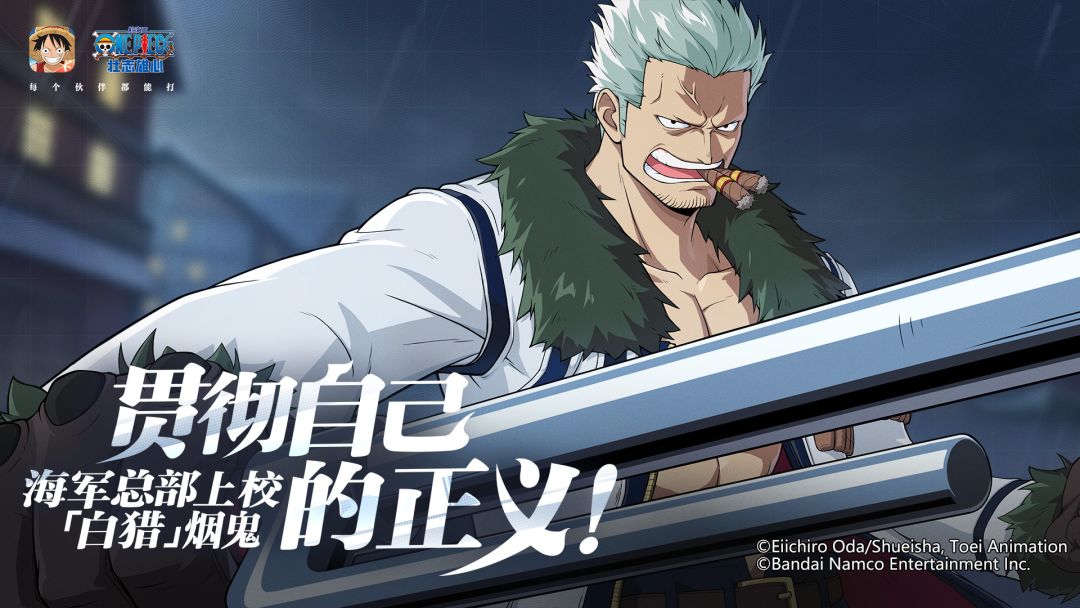「海上情报站」最新影像公开, 喜欢雪茄,实力强劲的海军总部上校, “白猎”烟鬼登场! 烟雾缭绕,隐现无常, 「不打倒我就去不了伟大航路」 见识烟雾之果的威力吧! 伙伴获取途径:#航海王壮志雄心 正式上线后 ,可通过【白猎的荣耀】活动,完成竞技场任务即可免费领取! ——12月相约上船—— >>>预约通道:https://www.taptap.cn/app/656788 #航海王 #烟鬼 #