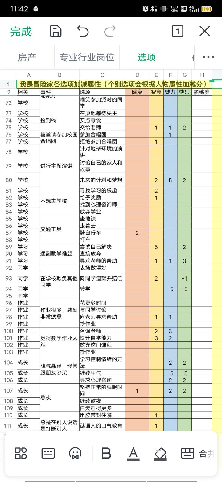 之前整理的部分选项属性加成【不完整,半个月没玩了】