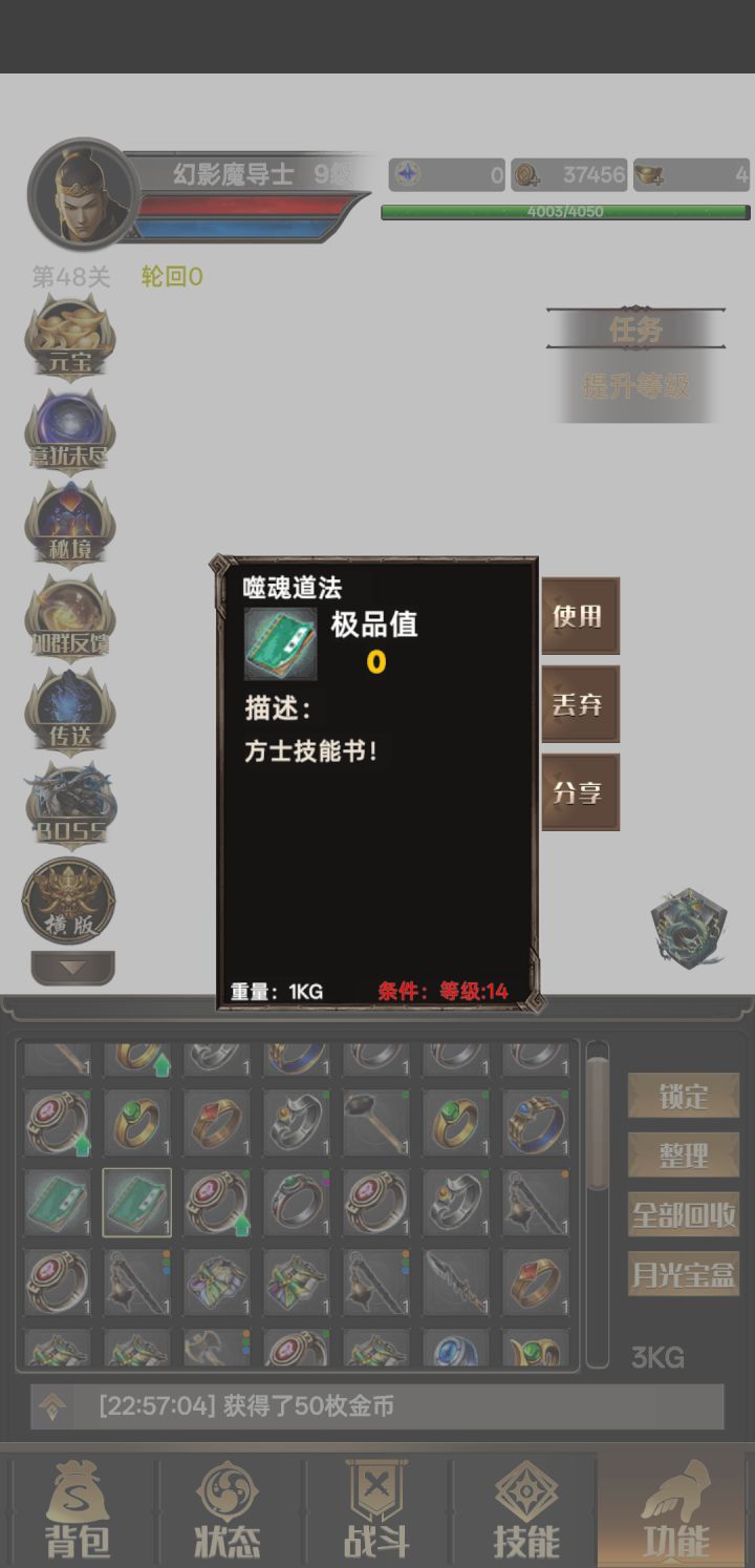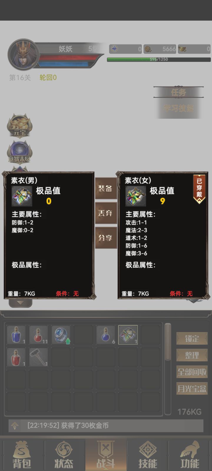 无礼包无福利最佳开局、哪里爆装备见上图Q群文件夹有最新安装包在Q群、tap下载安装包相同,和苹果平台不互通0、职业法师暴力,前期脆皮,后期很强大战士中庸,不好不坏,没有优缺点道士磨叽,想死很难,但玩着想死1、推图第10、30、50、100…以后每50关出现三选一属性框,✔后自动选buff,每1500关无属性选择,但会出现年兽,打死年兽后可以进入下一轮回轮回只能将元宝、军衔、三选