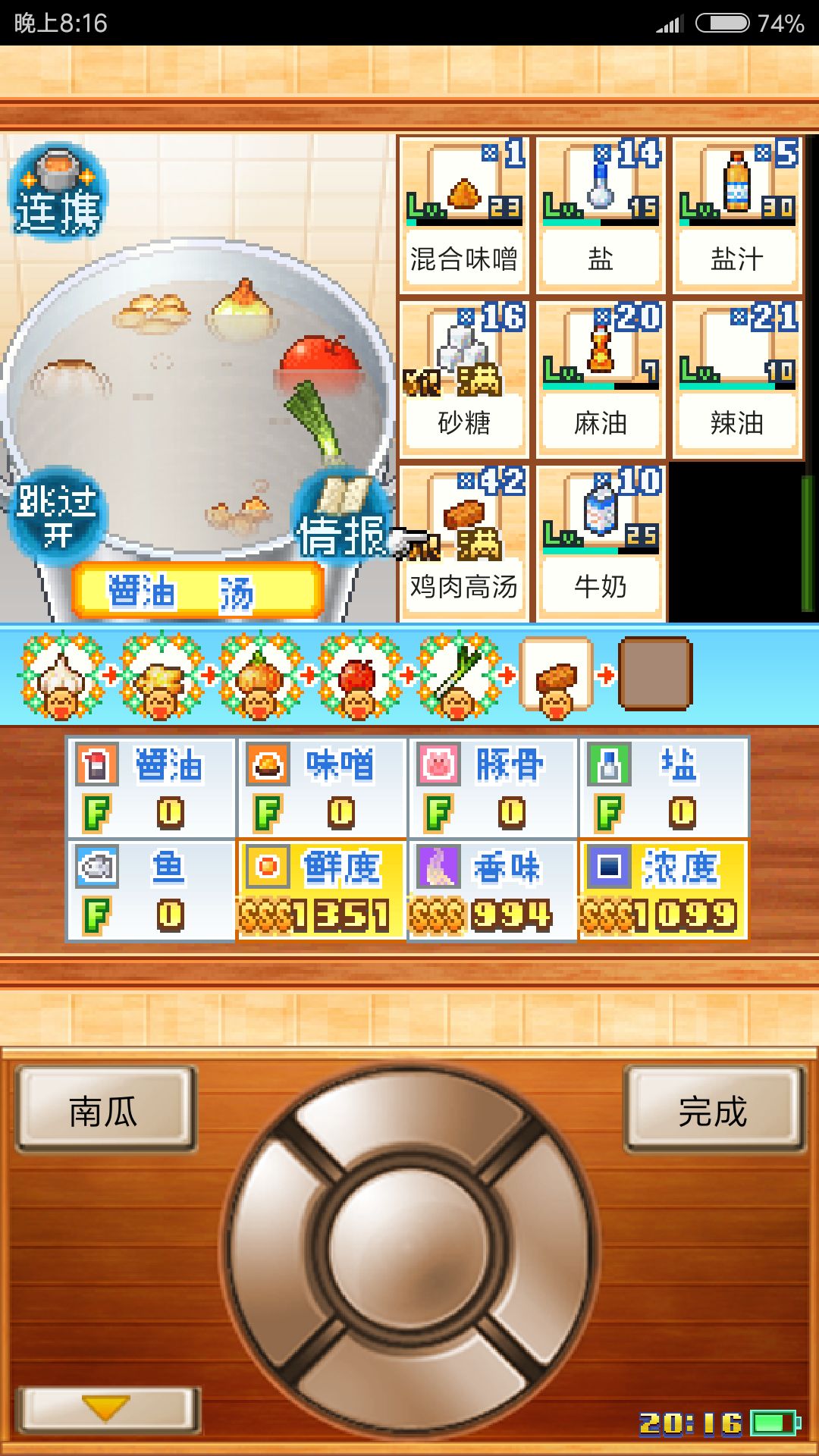 比赛专用配方,来自 @书沁林 的精华贴 苹果+大蒜+生姜+大蒜+生姜+鸡肉高汤*3 可通困难冒牌开罗杯