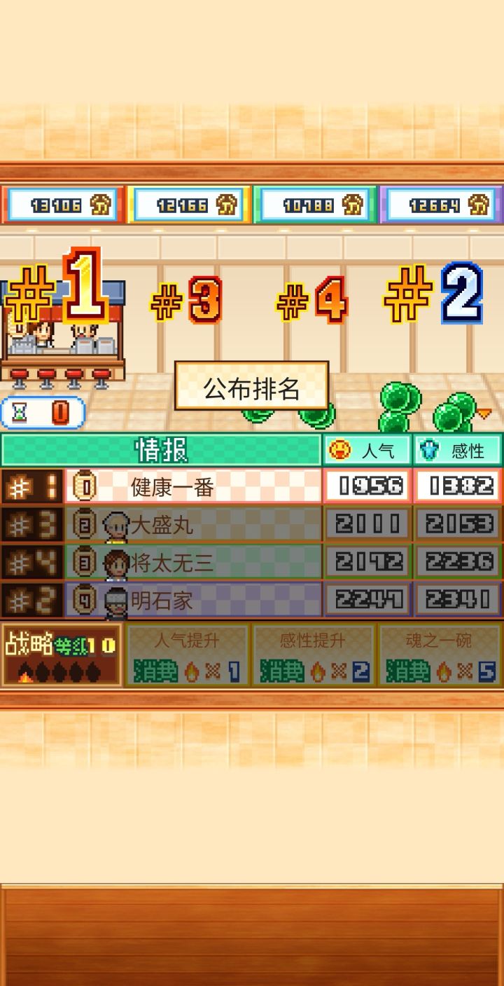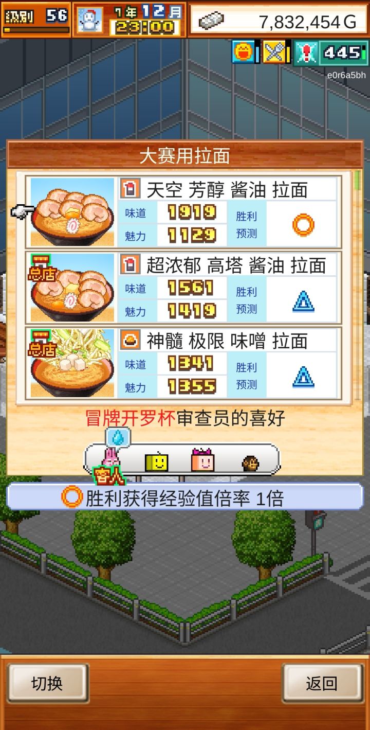 先说说底层逻辑:预测是游戏通过对拉面味道大小的判定,判定越低给的经验越高。在比赛中味道决定人气客流量,味道低没关系(不低于对手一半都行),可以通过配料增减改变味道,也可以在比赛中用战略提高。主要影响比赛胜负的是分数,喜好程度越大、人数越多,给的总体分数越高,❤>微笑>不微笑。 我总结了一些小技巧如下:一.在参加比赛页面时往下滑可以看到对手的拉面值,确定最大的味道值二.先从三角形和❌开始看,选