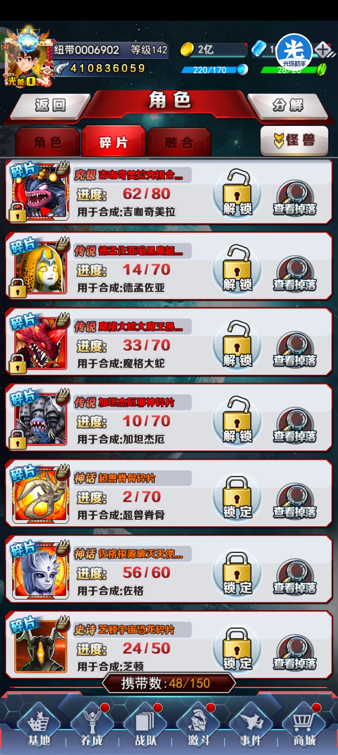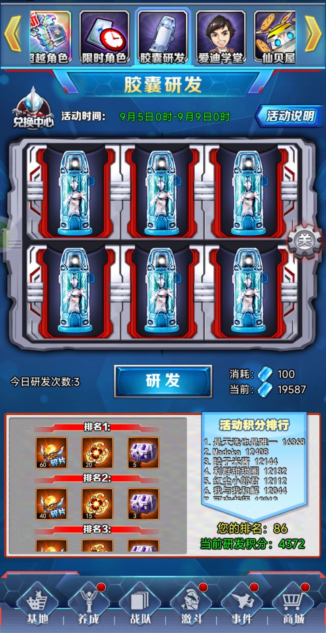 前言:前中期阵容为1主堆+6辅助(控制、增伤、加能、炮灰、本命)组成 主堆要求:能量技伤害倍率高、地图炮(至少能打三人或有追击技能) 第一阶段:哪个进阶高用哪个,已+7为目标 第二阶段(开武装前):钢铁九号(二形态)+嘎次星人(二形态)+主堆+奥母(二形态)+库拉克呼(二形态)+尤莉安,前两个保证100%控制,后三个保证无限能量。 第二阶段进阶(开武装后):勒休巴斯(带异能之30%异常增幅)+嘎次
