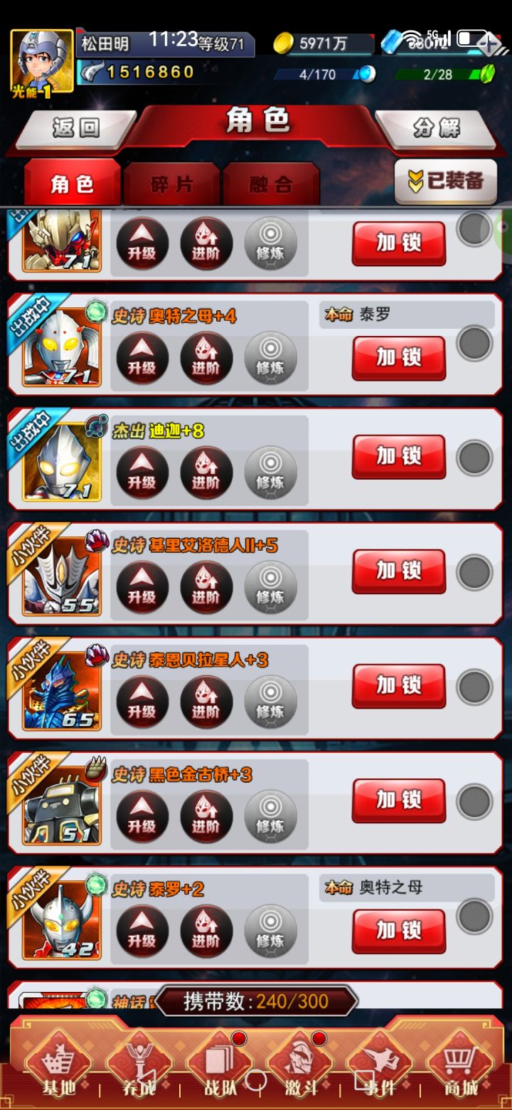 之前我看到有个人,没有充钱,上了几个红色角色,而且战力都好高,我也想,目前只有一个红色艾克斯。
