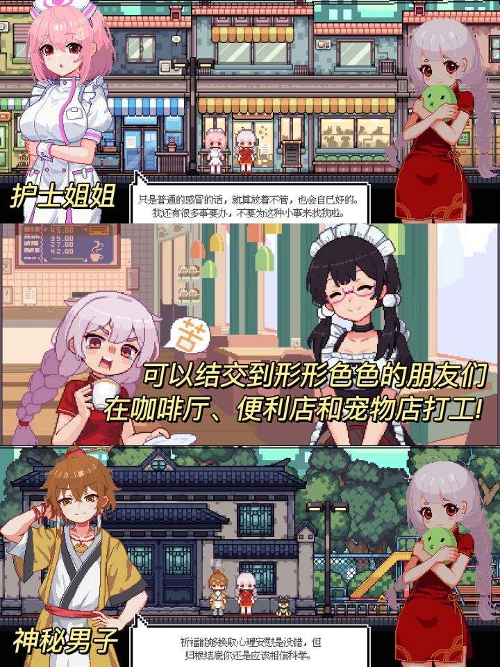 像素风新游💖养女儿+宠物街模拟经营!