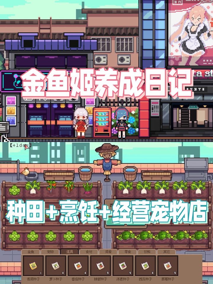 🎮游戏名:宠物街金鱼姬💖平台:Steam(暂未发售) ✨在游戏中我们将扮演金鱼姬小鲤的主人,培养她从一条小鱼🐟变成真正的人类!为她安排每周的学习课程,毕竟作为人类要学习的东西还真不少看我的 ✨日常生活中小鲤还可以通过在女仆咖啡店、宠物店以及便利店打工赚钱💰或者租下一家自己的店铺好好经营!还能结识到许多不同的朋友👭 ✨比较惊喜的是游戏还有种田、整理货架、帮宠物洗澡美容等