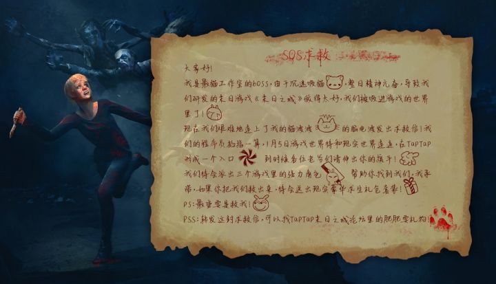 今天肥肥打开微信,收到了一封求救信!我们的游戏创作团队被困在游戏世界里了!(肥肥:???mmp???)为了让更多小伙伴前去救他们,肥肥决定举行一个活动!活动时间:即日起~2018.1.12参与方式:把求救信(本贴第一个图)分享到微博、朋友圈、Q群,截图后,把截图放在此贴的评论里,即可参与活动。活动奖品:肥肥将抽出3名小伙伴,送出50元京东卡一张!(如果参与的小伙伴超过50个,肥肥会追加