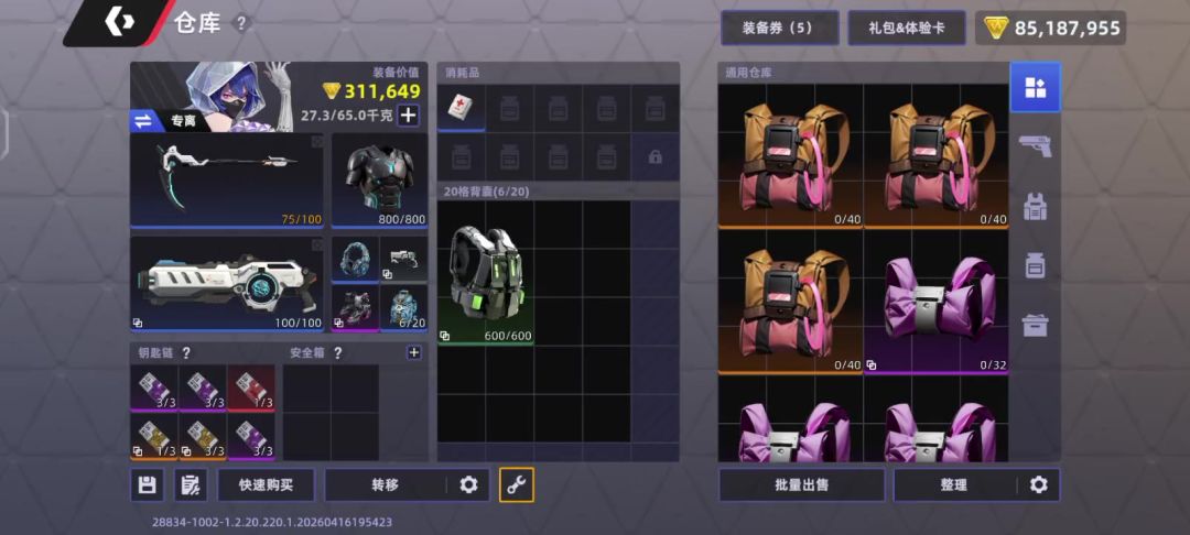 合成材料都塞满了,更不用提屯的装备了。快把合成台改改,允许提前存放材料吧。