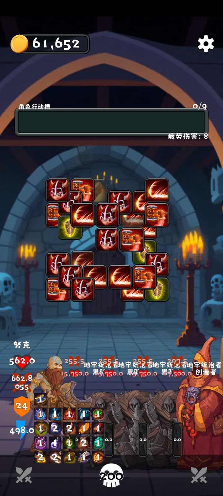 1.我这个游戏设计的初衷是通过消除方块来进行战斗,所以三消也是战斗中最重要的一环,底部的人物和魔物显示的状态,你不需要一直关注,有时只需要在消除过程中瞟一眼状态就好了。在战斗的开始阶段,有一个准备界面,上面显示了这次战斗中会出现的方块和魔物,你可以通过选择方块来战斗,上面的图标你可以长按获取更多信息。然后这个界面也有说明其它的方块是地下城的障碍物,你消除完了才能进行下一轮的消除,可能我这部分只是用文字说明表现力不够吧,我后面再看看能不能优化下