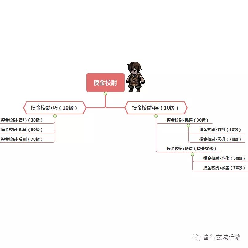 微信公众号都有的,但看到论坛还是经常有人问,我直接搬过来了,前面有做这个攻略的没有搬完整。还有部分职业找不到,有知道的可以回复在下边。 另外就我的体验说说摸金校尉各个职业分支的情况 因为我用得比较多的是摸金,手上总共2红1橙,其中一个还是摸金特殊职业大将。所以就我的感受说说摸金校尉的转职特点 巧分支:红卡摸金走的巧,特点是一技能的隐身和回血,消耗1格气,二技能是小范围的攻击,和力士(新手指导用那个