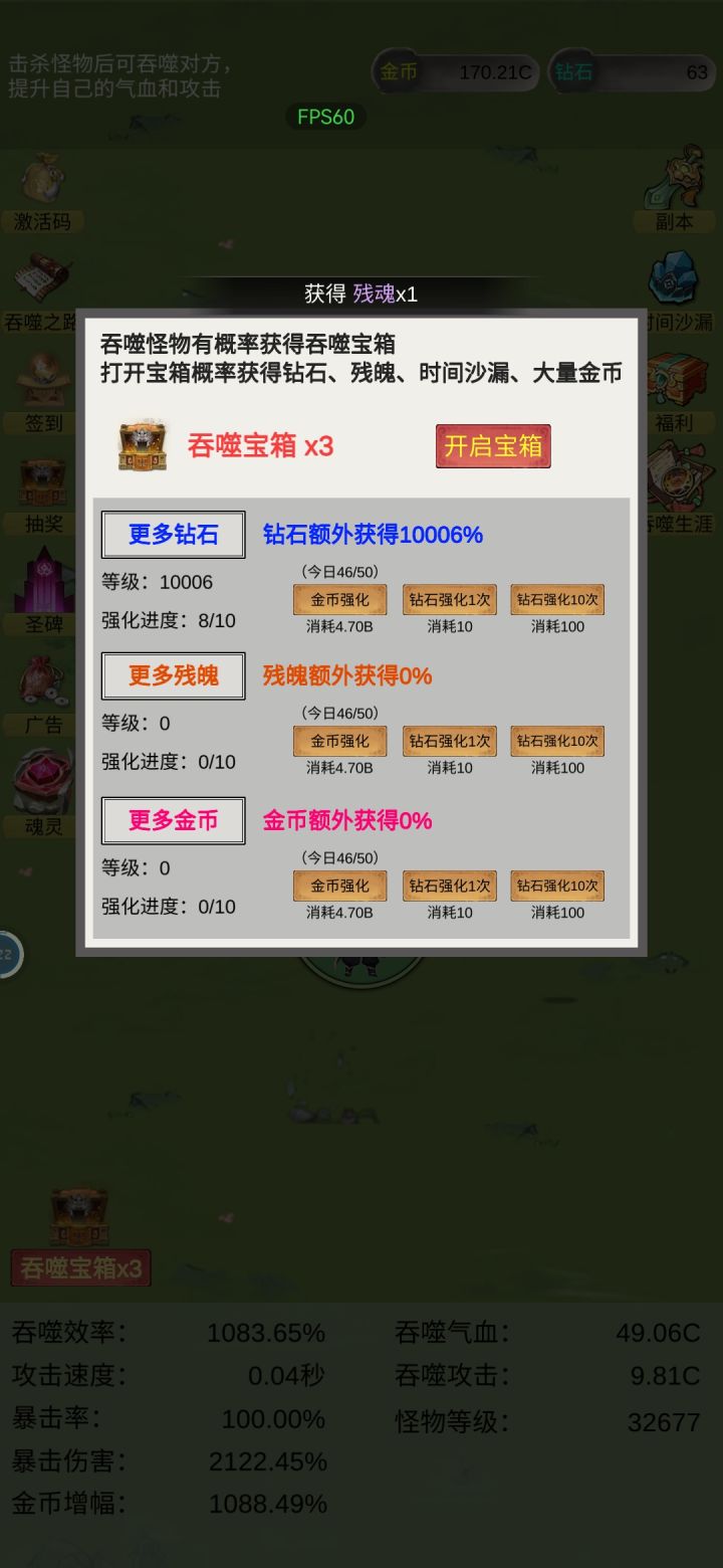 每天的上线就是点点点,抽奖,升级能不能来个一键?开宝箱的钻石用完得点半小时。