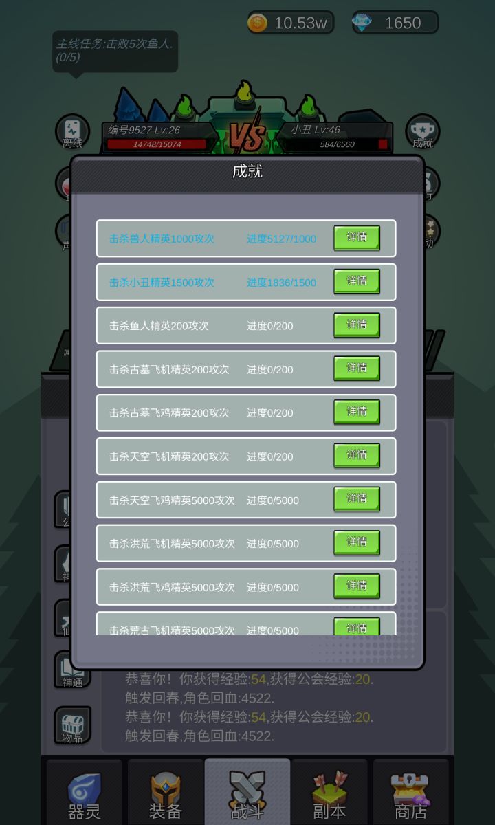 现在离线没有成就,意思就是要你买精英,正常挂机哪里有那么金币,洗装备,买药水,10分钟精英就是3w,刷不够500成就,一个破挂机游戏谁有时间死盯着手机跟你耗时间,一穷二白药水都买不起了,拜拜了您嘞。