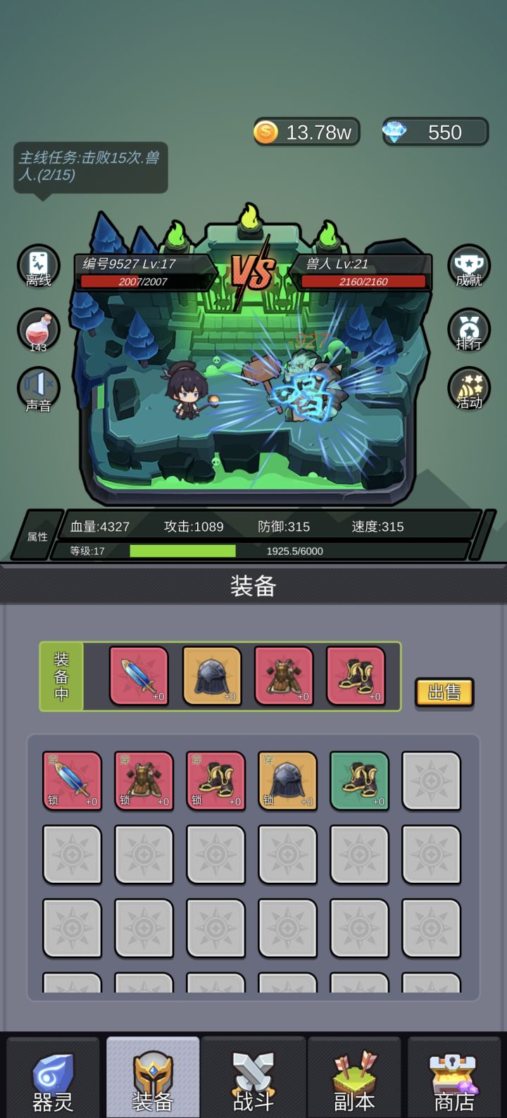 现在离线没有成就,意思就是要你买精英,正常挂机哪里有那么金币,洗装备,买药水,10分钟精英就是3w,刷不够500成就,一个破挂机游戏谁有时间死盯着手机跟你耗时间,一穷二白药水都买不起了,拜拜了您嘞。