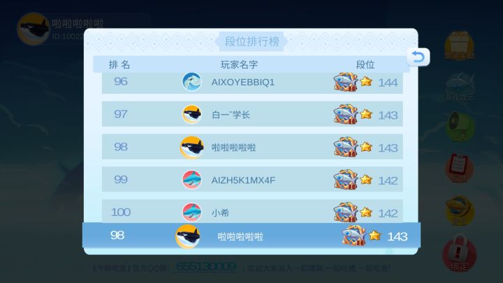 《吃鱼》计划于本月18日更新1.2版本,更新内容包括微信登录微信登录后为全新账号,原有玩家需要通过以下操作绑定原有账号上的所有数据,11月18日版本更新后进入的玩家可无视。1.玩家于2017年11月18日0点前登入游戏,点击主界面上的反馈按钮,系统会推送给玩家独立的绑定码(见下图)界面无复制功能,请玩家自行妥善保存好绑定码。(推荐截图保存)(如无推送信息请开启反馈页面内的弹幕功能)官方会