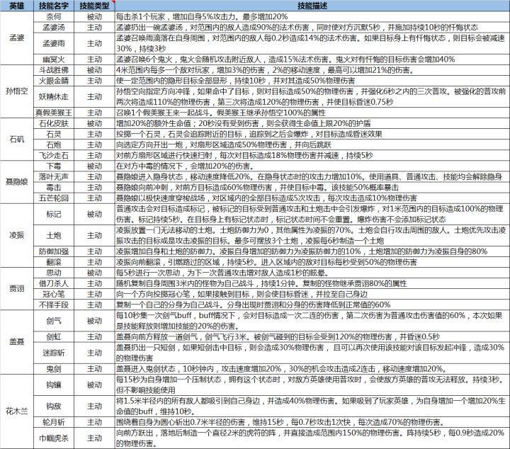本次测试的英雄技能全部展示在这里,大家可以了解一下各技能的思路~