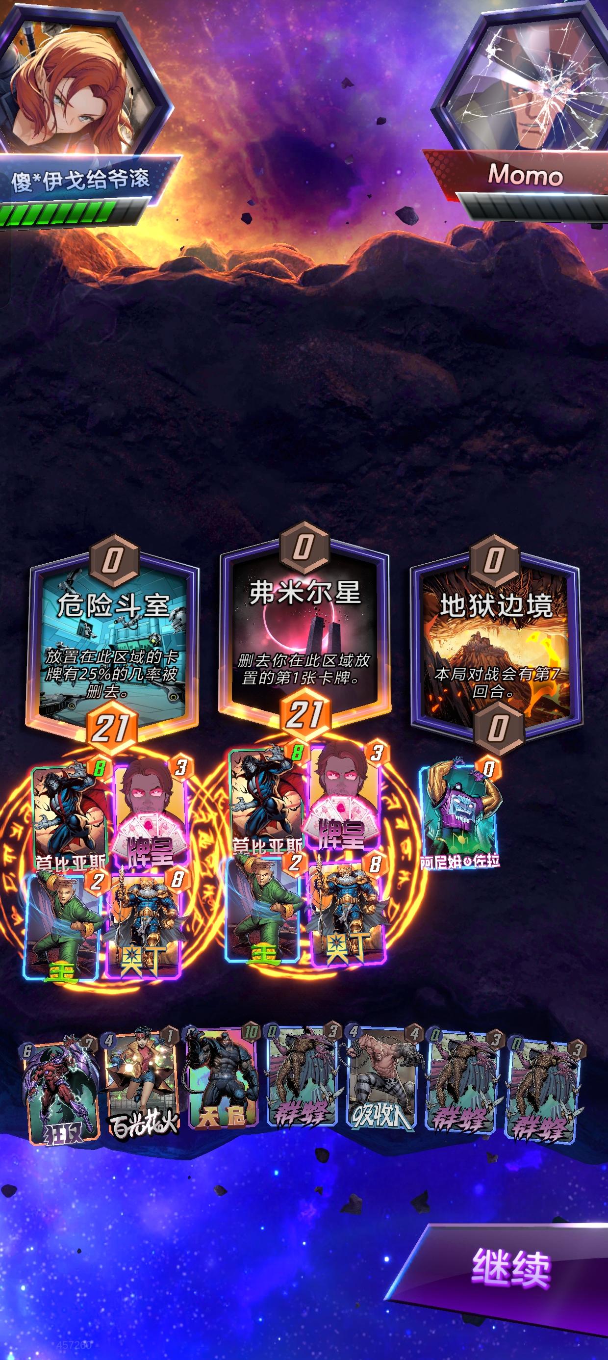 #漫威终极逆转s 删除流玩起来还行,没特别花里胡哨的操作,上分够用,满打满算3+7+花火+天使跳,刚好能一套打完,对战大多数卡组还是配赢的