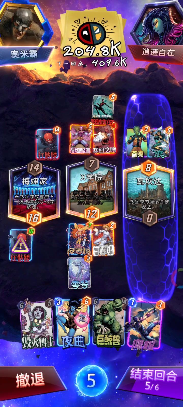 #漫威终极逆转创作征集令 在我看来,先是卡耐基,能够删掉所在区域里最多三张牌,每删去一张还能给自己加2点战斗力。 然后是死亡战士,把同区的队友全部炸成渣渣灰,自己却丝毫不涨点数,不过也是一口气能献祭三个人头的主儿。 他们两位,跟剑齿虎、金刚狼和巴基堪称绝配。然而在我看来,最绝的还是齐尔蒙格,只要在场上的卡牌初始能耗是1点的,敌我双方全部秒清场。 本人最爽的一局,是碰上中央公园放松鼠,加上双方还放