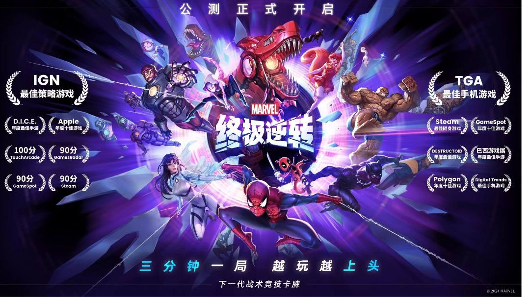 #漫威终极逆转创作征集令 漫威终极逆转 《漫威终极逆转》是由前暴雪制作人Ben Brode及其团队制作,网易代理中国区发行及运营的策略对战卡牌手游 ,于2024年5月发行,游戏平台包括App Store、PC、安卓等。 游戏玩法 - 卡组构建:玩家用12张卡牌组建卡组,卡牌代表漫威角色,有独特战力和效果。开局三张牌,每回合随机抽一张,共能抽九张 。 - 对战规则:每局回合上限六回合,敌我按顺序