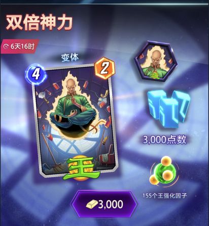 本攻略首发于旅法师营地,未经允许,不得转载 目前游戏正在进行最后一次删档付费测试,最近公布了新一轮礼包,这次的礼包有卡牌王的变体、王的头像、155个**化因子加上3000点数(蓝点),售价是3000金块。在讨论这个礼包值不值之前,先来看一下王这张单卡。 游戏通过战斗做任务获得强化因子加点数,可以强化卡牌特效,升级收藏等级。王属于3池卡(在收藏树486级之后进入3池范围,在此之前为1~2池),每个卡