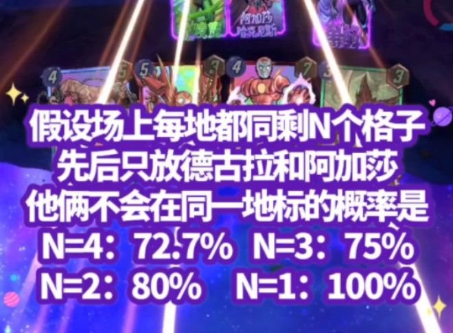目前该卡为全自动,奉上我的研究数据 这里的目标是:在全自动的情况下且高胜率 阿加莎: ⓪咱最好先别加注 ①能下自己时,必下自己;且被打下后,无法撤回手上;如果有牌可以移动,则必移动 当能移动去特定地点时,必会把牌移到特定地点(斗篷/纽约) ②被打出/被丢弃/洗回牌组时,失去自动打牌能力 ③将阿加莎视为额外存在: 卡组11张、开局抽3,开地,抽1,每回合抽1。共抽9剩2。5回合用15能量,打场上11