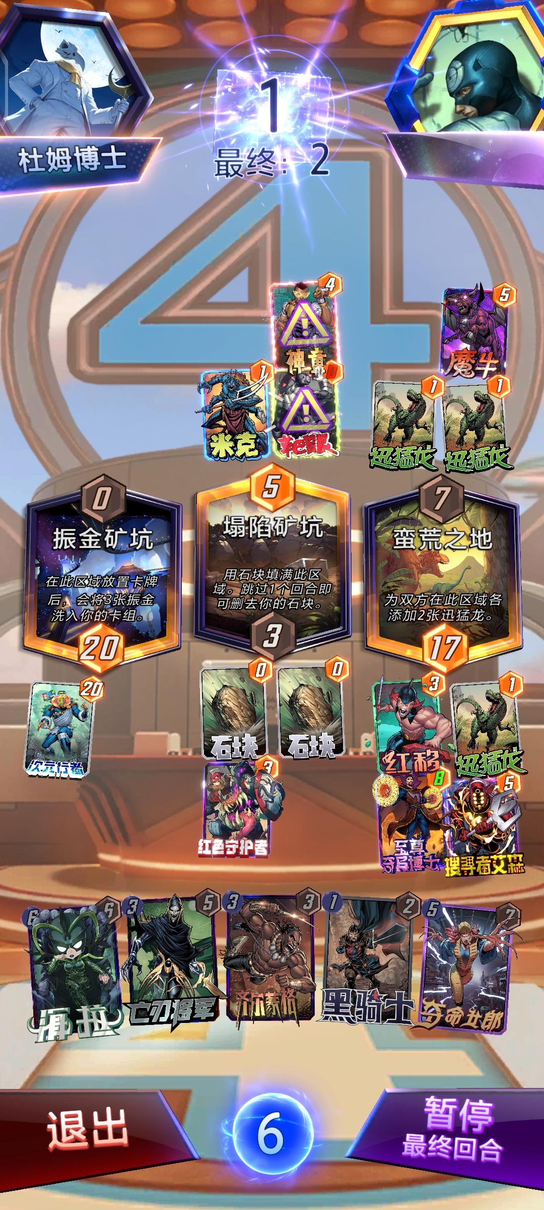 瑟西是打科尔森随机发的,卢克是打瑟西随机变的,我还嫌变的太小了来着(红移变卢克我寻思亏大发了),北极星是第二回合就提前埋在1区的,我都没指望能派上用场,结果关键移牌把对面3区的芬里尔狼移走了。最后开牌我都已经等死了,结果对面打了生化女,我一整个迷惑?我卢克在场上你都敢打生化女?
