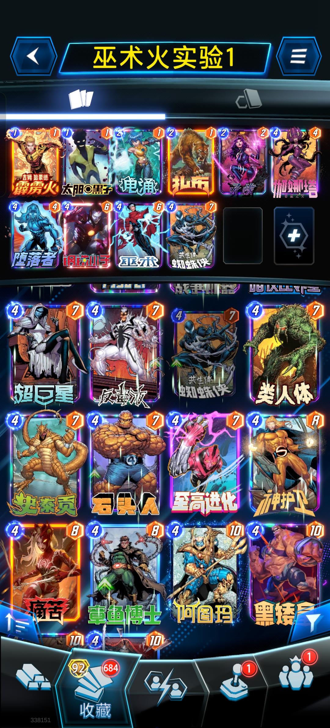 最能打的一集,牌少照样上无限。整活每套12张全不相同,推荐换啥都有说明,没提就是看喜好随便来。总之系列3够玩所有核心套路,莫让牌库限制你的想象。前篇:【套13】翻倍吞星,意不意外妮可金刚狼以为删除,蜘蛛侠气旋又像移动,绿魔恶鬼原来塞垃圾,征途空一路绝逼菜鸟,不是铁拳扇走苏睿啥意思?……!我用这套娱乐也没咋掉分,要点在灵活应变,卡手翻倍气旋恶鬼一样有机会。铁拳移不了左区妮可相反,所以看情况苏