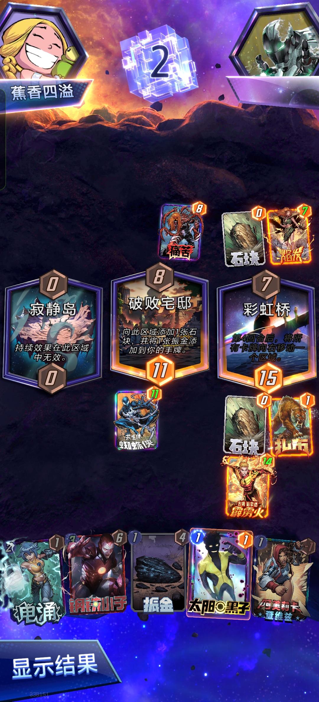 瑟西是打科尔森随机发的,卢克是打瑟西随机变的,我还嫌变的太小了来着(红移变卢克我寻思亏大发了),北极星是第二回合就提前埋在1区的,我都没指望能派上用场,结果关键移牌把对面3区的芬里尔狼移走了。最后开牌我都已经等死了,结果对面打了生化女,我一整个迷惑?我卢克在场上你都敢打生化女?