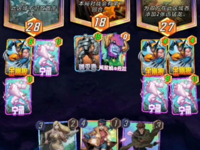最优先放本视频的打法思路攻略: 先说:我希望你们能够优先有自己的想法&思路 卡不是每个人都能有,但思路是每个人都能学会的~ 首先!我卡不齐,所以有没有富哥富姐帮帮我~ 然后!本卡组的成分是:“压缩卡组效果”“不怕被删除”“点数在自身之外”“跳费”“减费”“牌皇”“毁灭者” “压缩卡组效果”:吸收人、钢铁小子、百光花火、凤凰(缺)、反浩克、佐拉 “不怕被删除”:金刚狼、宁录、X23(缺)、死侍(缺/