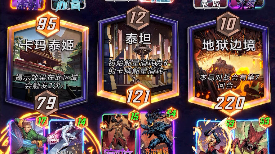 最优先放本视频的打法思路攻略: 先说:我希望你们能够优先有自己的想法&思路 卡不是每个人都能有,但思路是每个人都能学会的~ 首先,洛基,是必带的吧? 注:即便对面有皮肤?洛过来的也是原皮!但和洛基同框 其次,电索、牌皇、吸收人、尚气,贴合主旨也是必带的吧 然后,小飞机、扎布,是必带的吧? 猩红女巫:至高进化那傻袅老是想第7回合拍俩大爹出来 以上8张必带 剩下4张?从“可添加手牌”“纳尔”“恐龙”“