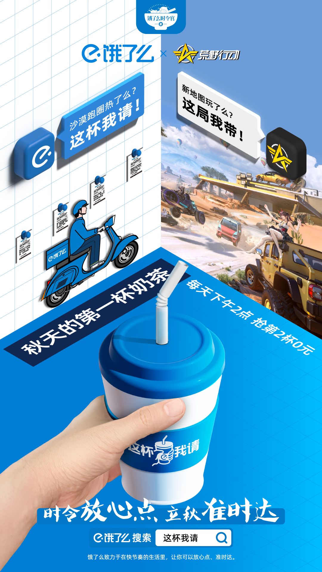 新地图大家都玩得怎么样? 燥热仲夏,热浪滚滚 沙漠和绿洲固然有趣 但就怕荒友们玩得口干舌燥呀 别慌,热了么?这杯我请! 荒野行动 × 饿了么联动启动! 给新地图飙车太猛的荒友们 送上飞驰绿洲限定下午茶~ 每天下午两点,抢第二杯0元! 还有夏季推荐低至五折起 解暑饮品助你在飞驰绿洲的旅程中 嘴巴清凉,头脑清醒~ 前往饿了么搜索“这杯我请” 即可前往活动界面,畅饮一夏!