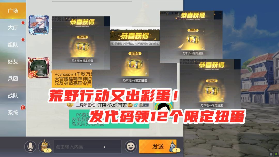 荒野行动:又出彩蛋了,发代码领12个限定扭蛋,免费抽奖永久皮肤,荒野行动:元旦又送福利了!大厅发祝福领12个限定扭蛋,白嫖皮肤