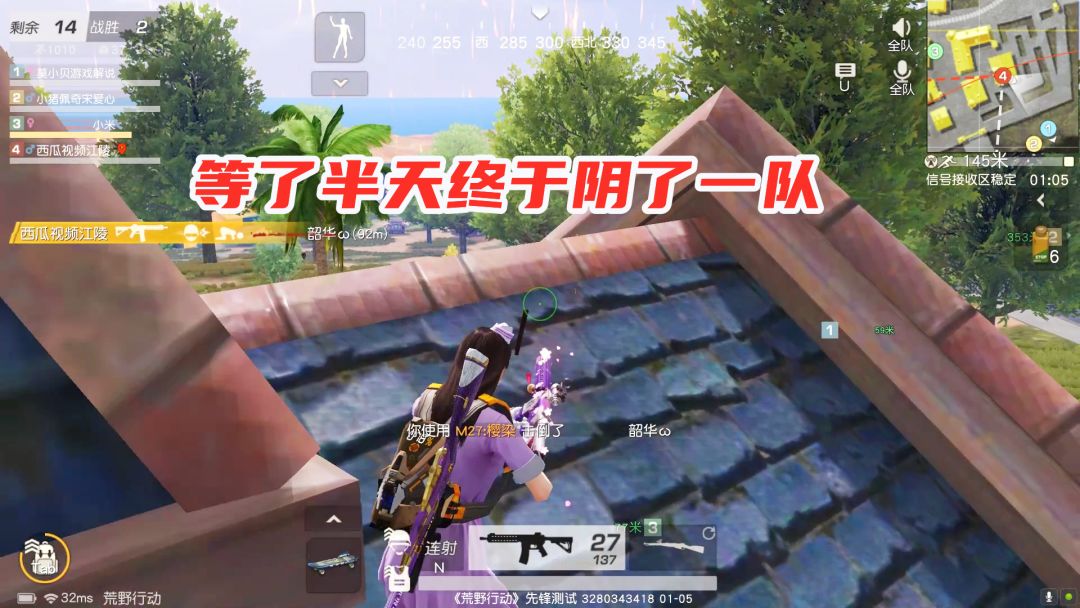 荒野行动:等了半天终于阴了一队,提前锁定决赛局,满编队伍吃鸡