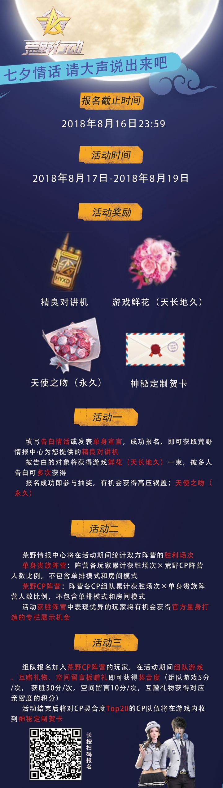 不管有没有CP,七夕都得过。这个七夕,相约荒野走一波!福利多,朋友多,欢乐也多!荒野七夕,了解一下!