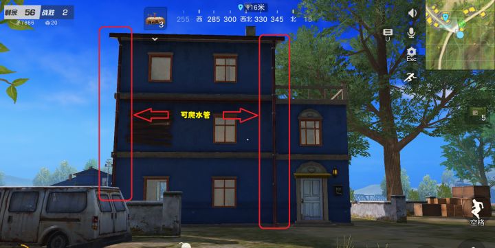不知道大家有没有过被敌方从房顶偷袭却无可奈何的经历想知道他们是怎么成功登顶的么补漏王来为你解密秘籍就是——爬水管以飓风半岛地图为例我们要仔细观察房子建筑情况便会不难发现以下几种房子边沿设有水管三层蓝房每一栋三层蓝房都会有两根可爬水管,爬水管的方式都是一样的,贴近水管按下跳跃键便可向上爬。若是在爬水管的途中遭到了对手的攻击,可再次按下跳跃键放弃爬行离开水管躲避并反击。“L”房“