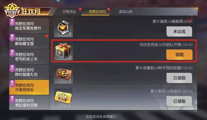 在最近荒野的狂欢月活动中只要和好友完成10次组队开黑就能得到内含超值奖励的。狂欢月开黑宝箱为了完成这项任务补漏王可谓煞费苦心天天去找队友开黑可总是一脸高冷地拒绝了我。面对这么好的福利补漏王我可不会这么轻易地就收手,于是我独创了下面的组队四式不管多么高冷的好友都能瞬间拿下。OS:哦?是吗?大家可要学着点,不管撩妹还是组队把下面的招式都安排上就完事了。方法一:花式彩虹屁第一个方式最为优雅核心