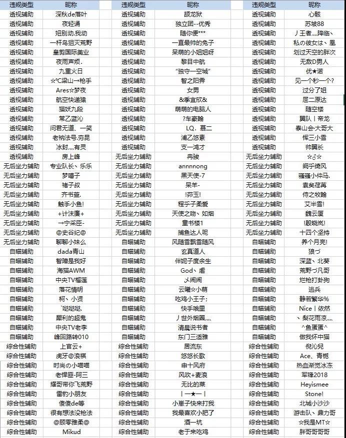 【打击外挂公告】违禁玩家处理公告