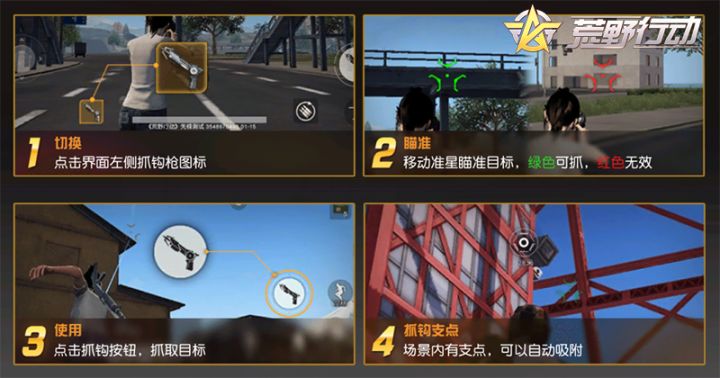 《荒野行动》中各种新鲜的休闲玩法为玩家们提供了多样化的玩法选择,让游戏变得更加有趣。今天,全新玩法抓钩大作战登陆《荒野行动》都市阵线地图,荒野精英们人手一把抓钩枪,在高楼大厦间飞跃穿梭,感受不一样的都市立体作战体验。【全新抓钩枪,助你飞檐走壁】在抓钩大作战中,全新道具——抓钩枪可以帮助玩家移动到被抓取位置,进行快速转移。抓钩枪占用投掷武器栏位,玩家们进入该玩法之后就会默认携带抓钩枪,并且在出生
