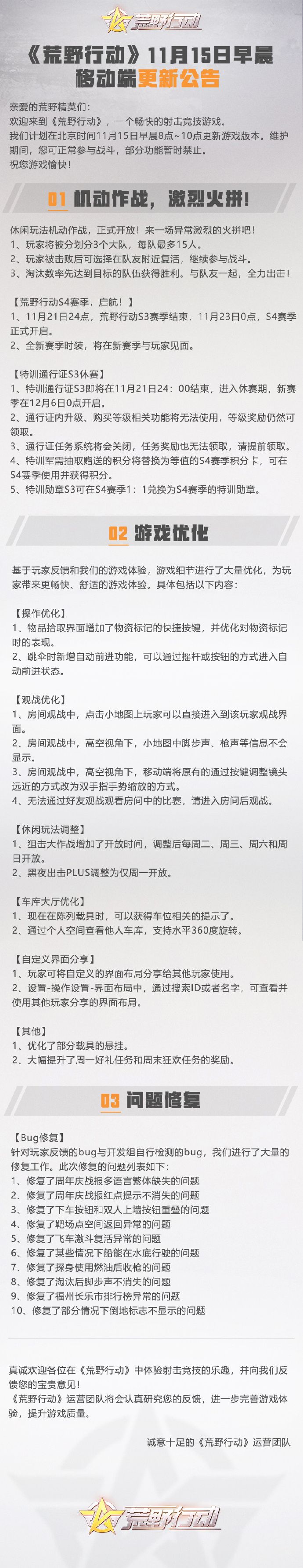 《荒野行动》11月15日移动端更新公告