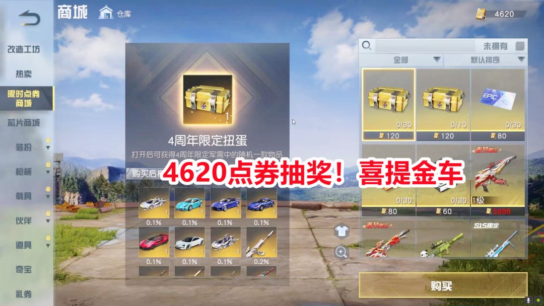 荒野行动4620点券抽奖喜提金车!四周年活动完美结束,这波赚大了