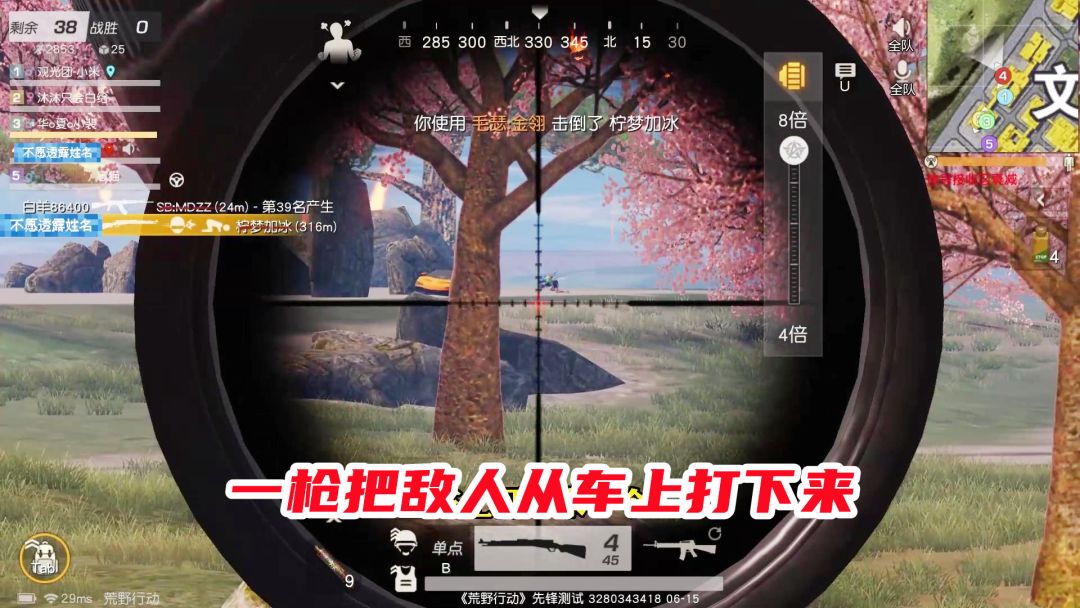 荒野行动:就一队敌人,还一枪从车上打下来一个,一枪把敌人从车上打了下来,敌人队友看都不看就跑了!荒野行动,荒野行动:一局就碰到俩敌人,还一枪被从车上打下了一个,真惨!