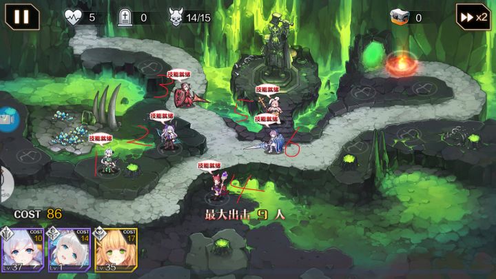 今天已经4日了,想必各位大佬都已经打完第三个图了,不过我还是简单讲解下3个图的站位ps:(不会太写攻略见谅)第一关:摆放顺序如图,其实只要放3个输出就能挂机了- -不过这样放给萌新等级不高的情况下用主要输出还是3星弓的减甲然后配合5星冰弓就能直接造成击杀,3号位放个盾防止在输出boss时候小兵过去第二关:这张图由于最后的boss有装甲只有当你打死那个黑色三角头然后爆炸炸到boss才